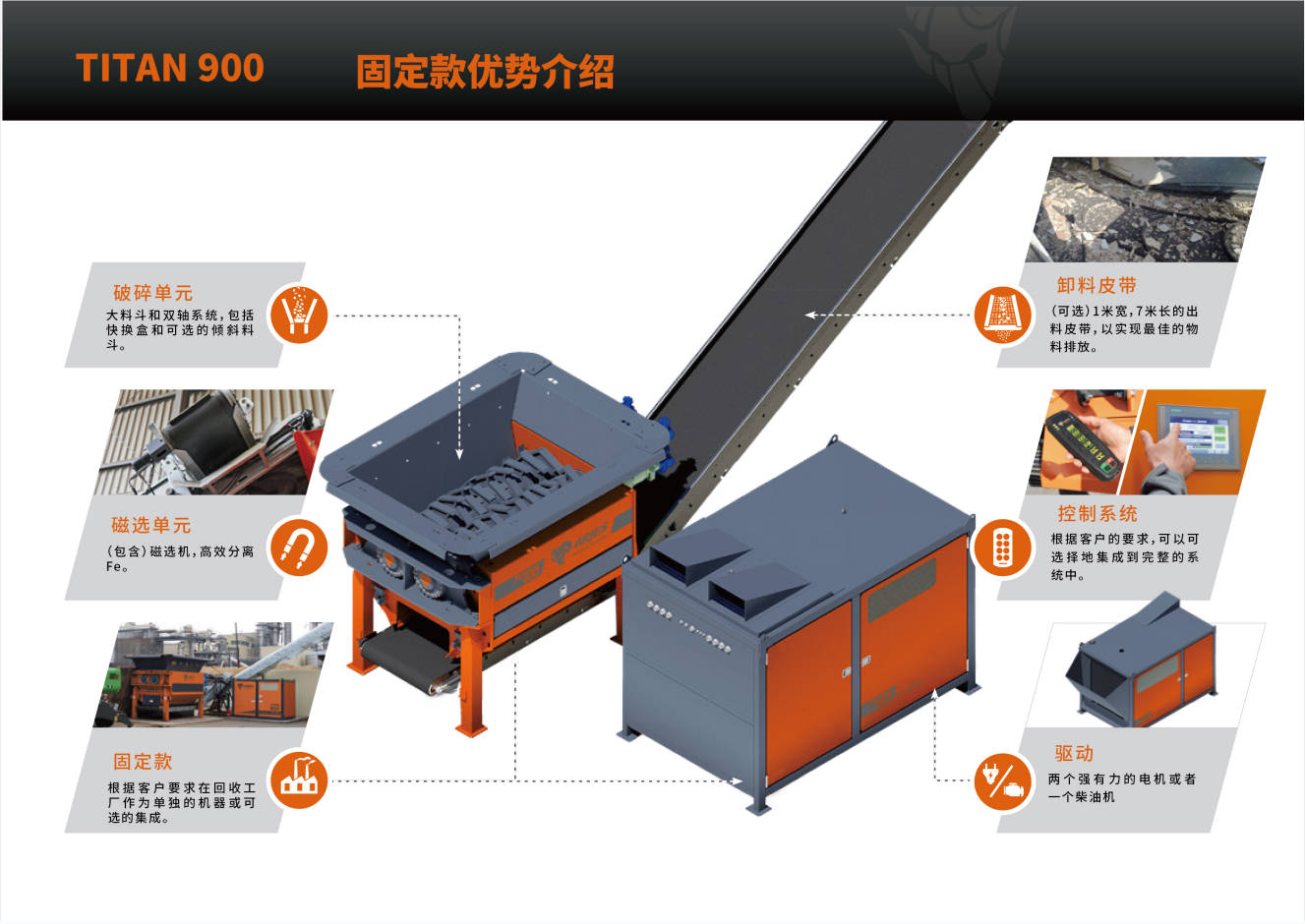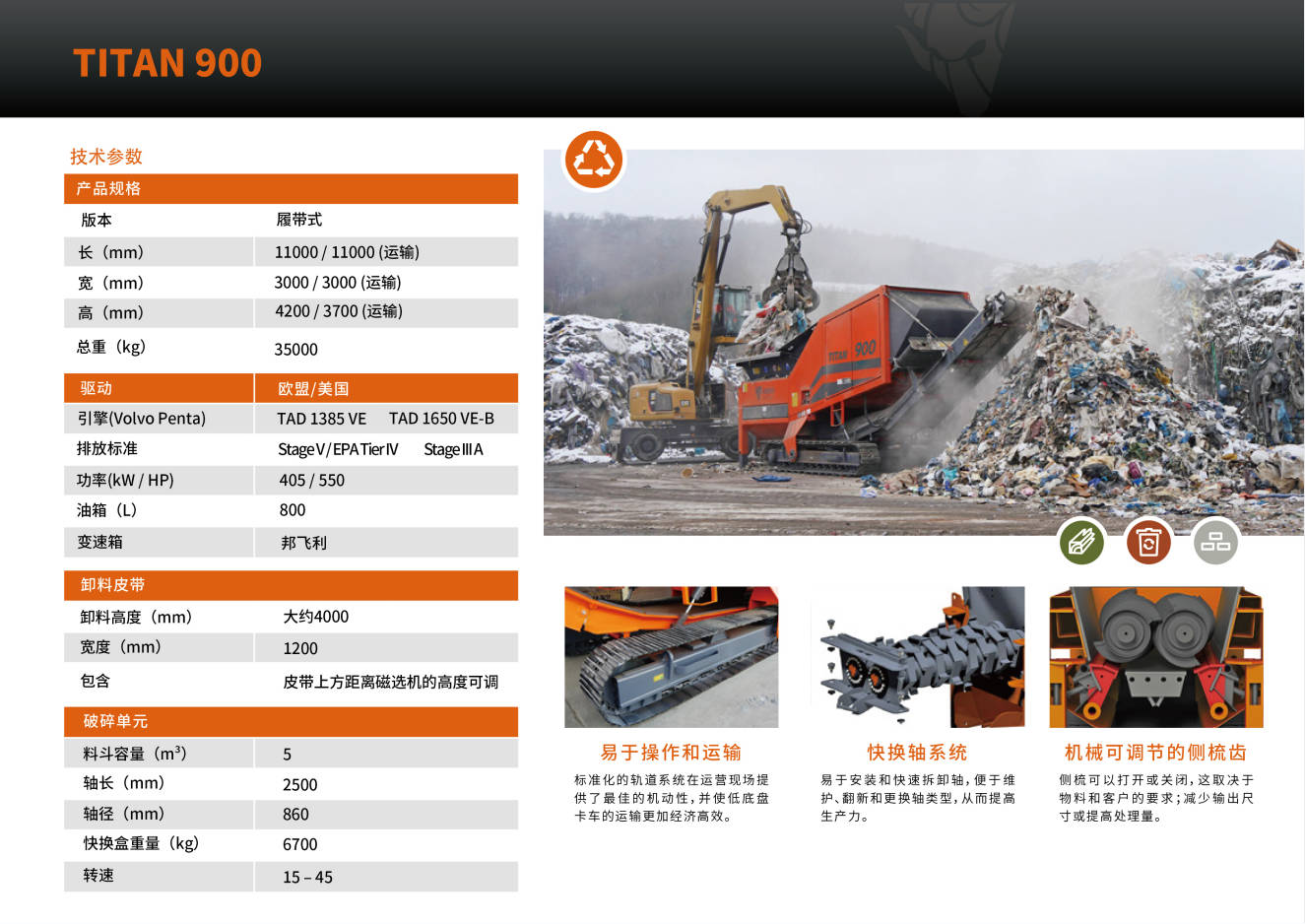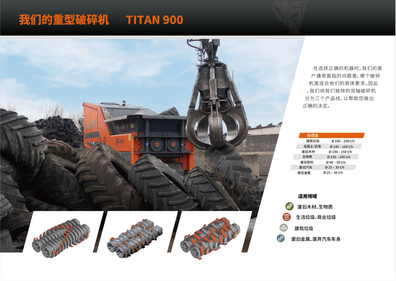 ARJES公司以其雙軸撕碎機(jī)而聞名,其產(chǎn)品具有超高的移動(dòng)性能。ARJES  TITAN 900 系列重型撕碎機(jī)是根據(jù)市場(chǎng)多場(chǎng)景應(yīng)用需求設(shè)計(jì)并制造的固廢垃圾處理設(shè)備,可破碎各種堅(jiān)硬的物料,例如瓦礫,混凝土等,以應(yīng)對(duì)國(guó)內(nèi)市場(chǎng)急需的環(huán)保型建筑垃圾循環(huán)利用設(shè)備。德國(guó)原裝的這款設(shè)備,可移動(dòng),可固定;功能強(qiáng),能耗低,可處理大型輪胎、大件垃圾、建筑垃圾、漁網(wǎng)等多種廢棄物,適合高處理量的需求。